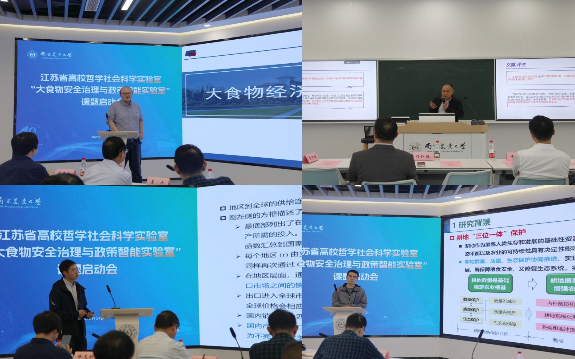 近日,江苏省高校哲学社会科学实验室“大食物安全治理与政策智能”课题启动会在南京农业大学第三实验楼一层哲社实验室演示厅顺利举行。启动会由南京农业大学经济管理学院副院长朱战国教授主持,评审专家、课题申报团队及实验室成员等近50人参加。